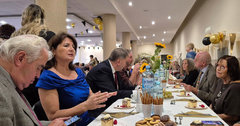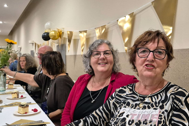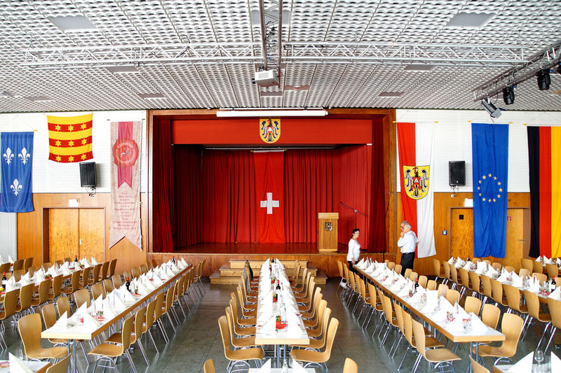 Nach der Vorstellung ging es in einen großen Raum mit Tischen und Stuhlreihen. Hier haben dann die Goldengirls das Zepter zur Bewirtung übernommen. Bei uns am Tisch saß der Stadtpräsident mit Gattin und wir wurden noch einmal sehr herzlich begrüßt.