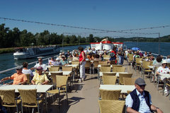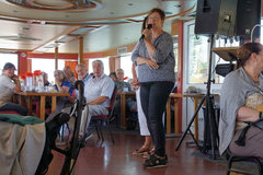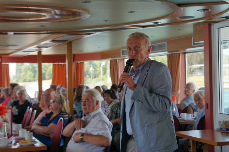 Die Auflage 2024 der Seniorenschifffahrt für Seniorinnen und Senioren aus Breisach, aus Neu Breisach und aus St. Louis hatte für eine nahezu voll belegte "Weinland Baden" gesorgt. Die Einladung der Stadt Breisach gemeinsam mit dem Seniorenbeirat der Stadt Breisach ergab erneut ein quasi volles Haus, sorry, Schiff ! Nachdem alle Teilnehmer, versorgt mit Bon für Kaffee und Kuchen, das Schiff geentert hatten wurde der Anker gelichtet und schon ging es los. Der Vorsitzende des Seniorenbeirats begrüßte gemeinsam mit Corinna Hervè die Teilnehmerinnen aus Breisach, aus Neuf Brisach und aus der Partnerstadt St. Louis. In diese Begrüßung stimmten auch die Offiziellen der beiden Städte, Jocelyne Straumann, Estelle Willig und Karin Schira ein. Mit bewährter musikalischer Begleitung durch "Benny" wurde schon bald gesungen, geschunkelt, gelacht und getanzt. Was gab es alles zu erzählen und zu berichten. In allen Gesichtern war die pure Freude zu sehen. Ziel erreicht. In gemütlicher Fahrt bis unterhalb der Staustufe Burkheim, dann eine elegante Wende und wieder gemütlich zurück, vorbei am Gelände des Festivals "Pinot und Rock" bis zum Anleger. Und wieder: Ziel erreicht. Unglaublich viele Gäste bedankten sich ausdrücklich für die schönen Stunden. Das macht Laune.