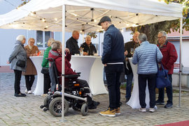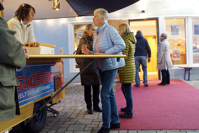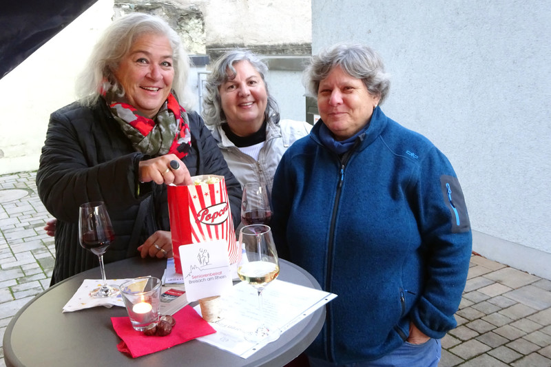 Gemeinsam mit dem Team des Kommunalen Kinos Breisach wurden 3 Filme ausgewählt und diese dann am 24./25. und 26 Oktober im Kino angeboten. Wie üblich haben wir so etwa anderthalb Stunden vor dem Beginn der Vorstellung auch Wein, Sekt und andere Getränke sowie etwas Gebäck und Hefezopf angeboten. Wir wurden auch weitestgehend vor Regen verschont, wiewohl es recht frisch war. Das alles tat aber der Stimmung keinen Abbruch, so dass fröhliche Gesichter das Geschehen bestimmten und angeregte nette Gespräche entstanden. An den drei Kinoabenden kamen dann doch insgesamt nahezu 300 Kinogäste zusammen. Damit können wir erneut ein solides Ergebnis dieser Aktion des Seniorenbeirates Breisach verzeichnen. Allen Besucherinnen und Besuchern herzlichen Dank für’s Kommen. Allen Helferinnen und Helfern vor und hinter den Kulissen ein ebenso herzliches und großes Dankeschön.