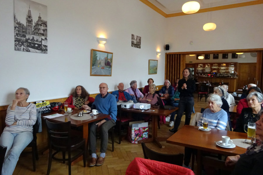 Gemeinsames Mittagessen und dann Fahrt zum Marktplatz und hier zusammen mit Gabriel und einigen Senioren einen Rundgang und Besuch des Stadtmuseums mit Einführung in die Geschichte. Weiter geht’s zu einer Kirchenanlage mit Bezug zu einem Frauenkloster sowie einem Männerkloster, welche in der Geschichte der Stadt verankert sind. Und schon geht es weiter durch das jüdische Viertel mit dem Besuch einer Synagoge. Kurzer Stopp zur Kaffeepause in einem jüdischen Kaffeehaus.