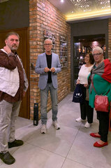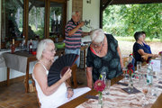 In einem hübschen Raum innerhalb unseres Hotels ist der abendliche Treffpunkt zum Abendessen und erstem Kennenlernen der Gastgeber, mit Übergabe der Geschenkle an die Anwesenden.