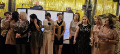Abfahrt zur Kongresshalle und Empfang von vielen Damen im Goldglitzerlook. Uff, da waren wir in unseren Klamotten ganz schön prüde.