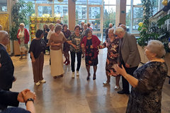 Der Stadtpräsident sprach Begrüßungsworte, es wurden verschiedene Senioren aufgerufen und mit Blumen geehrt. Krystina als Vorsitzende der Senioren bekam eine Schärpe und vom Stadtpräsidenten den Schlüssel der Stadt überreicht, als sichtbares Zeichen für den Beginn der Woche der Senioren. Sehr feierlich und schön.
